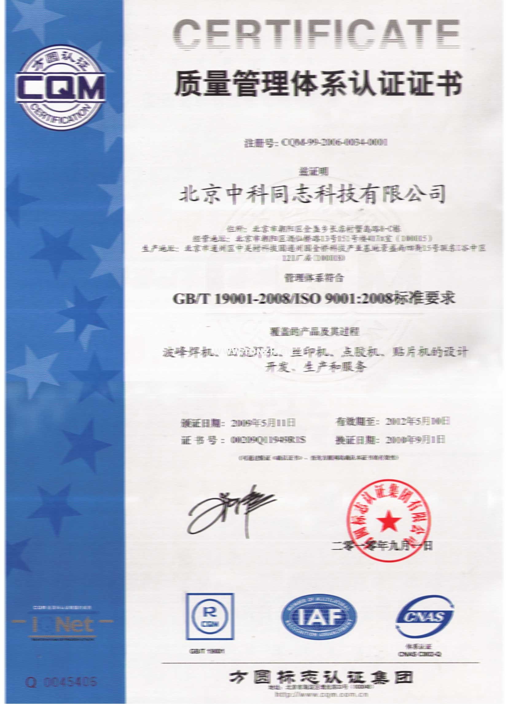 ISO9001质量体系认证