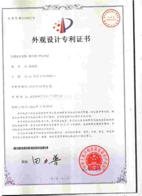 TP210V2外观设计专利证书