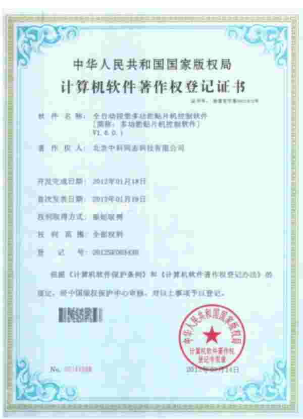 全自动视觉多功能贴片机软件著作权证书